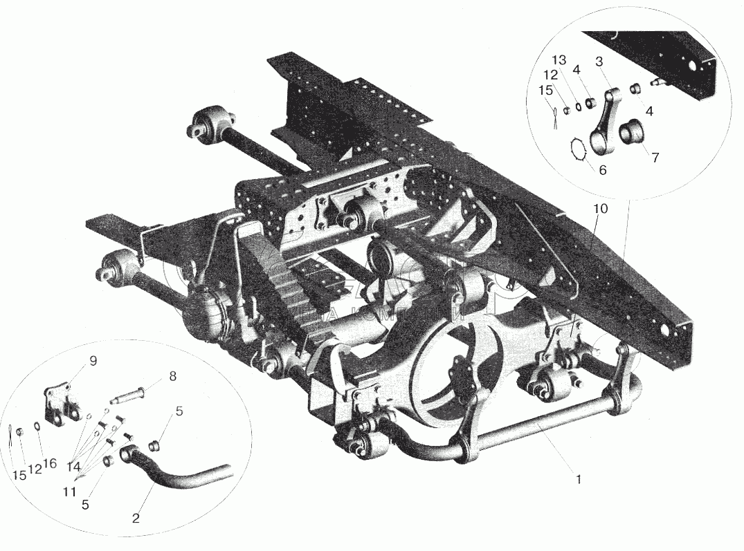 Каталог запасных частей к технике: МАЗ-5432. Подвеска балансирная 551605-2900002, 551605-2900002-10