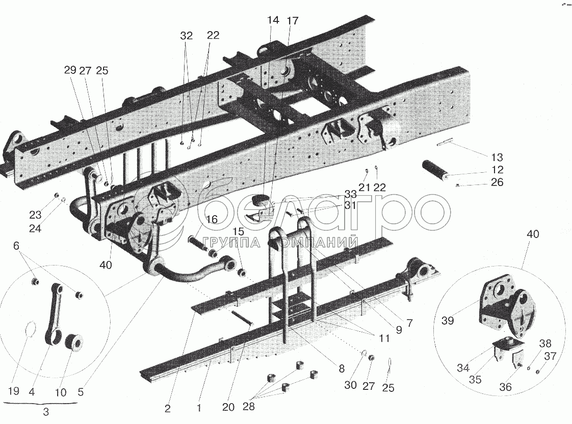 Каталог запасных частей к технике: МАЗ-5432. Подвеска задняя 5551-2900002-10