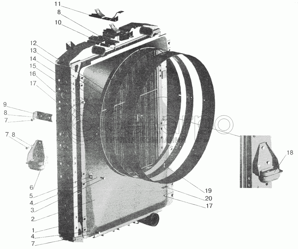 Каталог запасных частей к технике: МАЗ-5432. Радиатор с кожухом МАЗ-642208, 543208