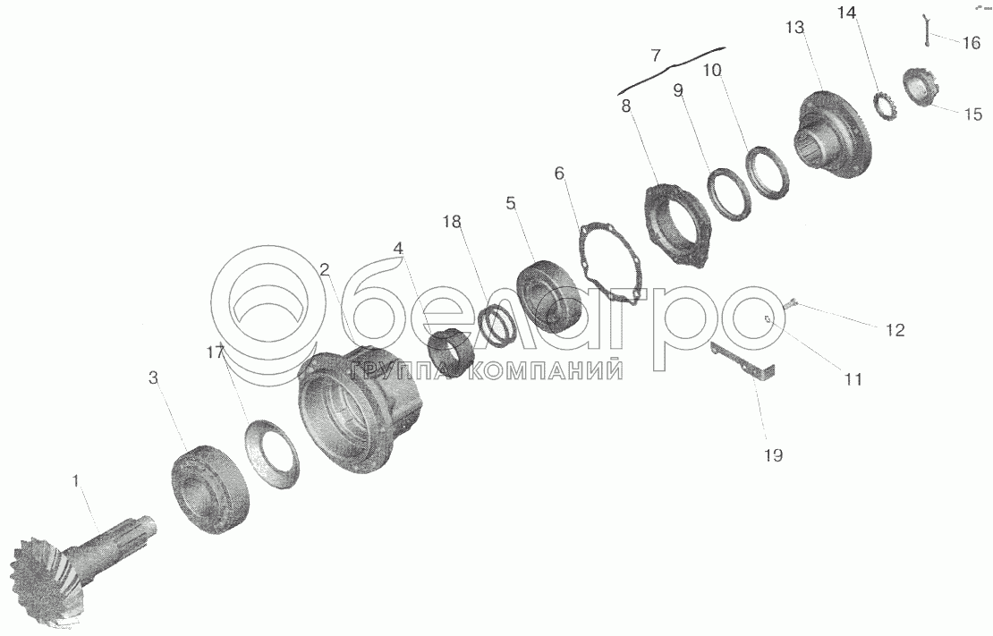 Каталог запасных частей к технике: МАЗ-5432. Редуктор заднего моста. Шестерня ведущая