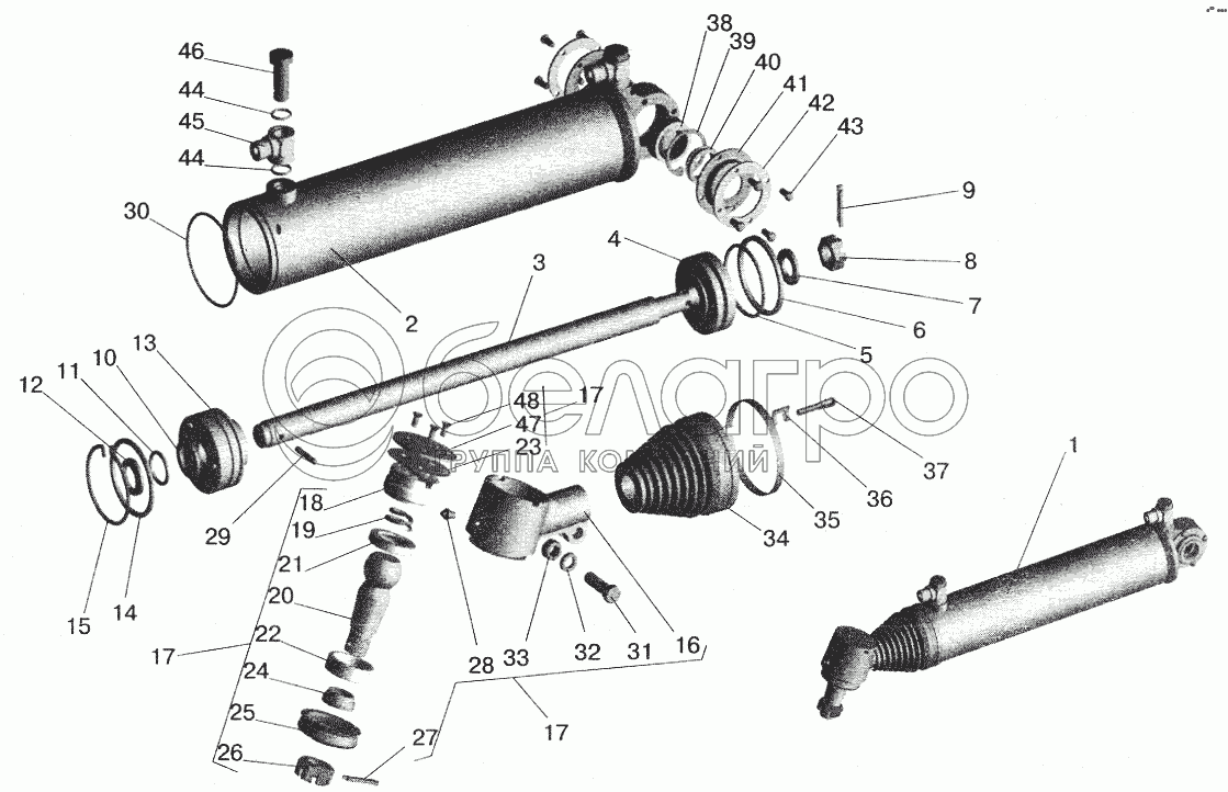 Каталог запасных частей к технике: МАЗ-5432. Силовой цилиндр гидроусилителя рулевого управления