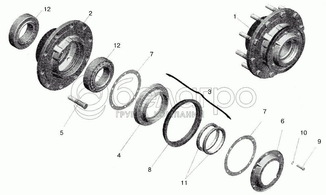 Каталог запасных частей к технике: МАЗ-5432. Ступица моста