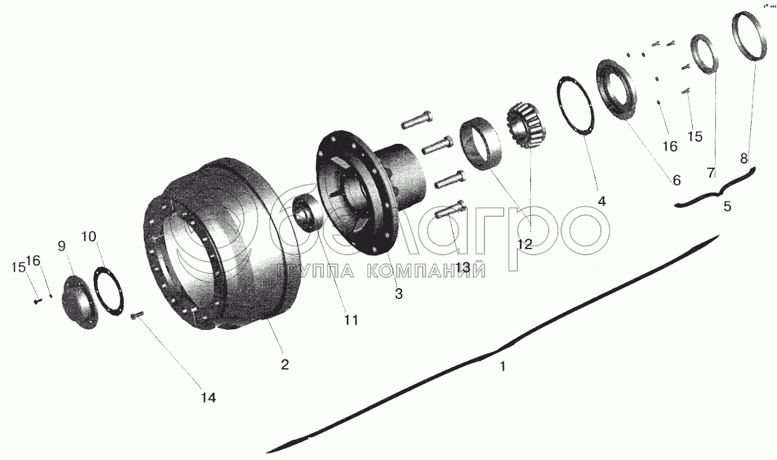 Каталог запасных частей к технике: МАЗ-5432. Ступица переднего колеса