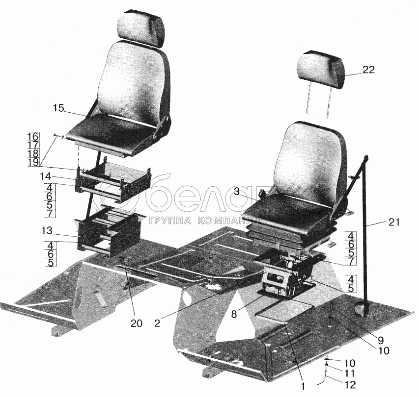 Каталог запасных частей к технике: МАЗ-5432. Установка и пневмопитание сидений 5551-6800006-040