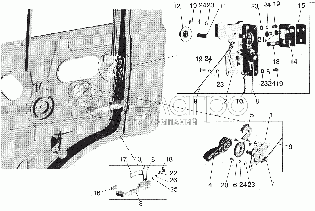 Каталог запасных частей к технике: МАЗ-5432. Установка наружной ручки и замка двери