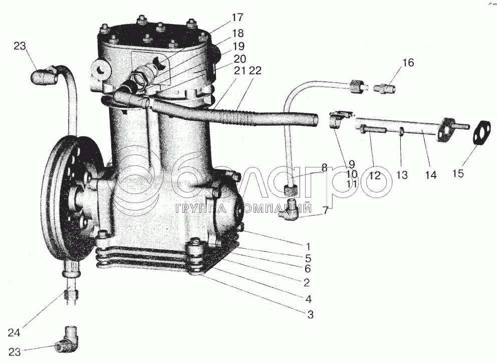 Каталог запасных частей к технике: МАЗ-5432. Установка пневмокомпрессора