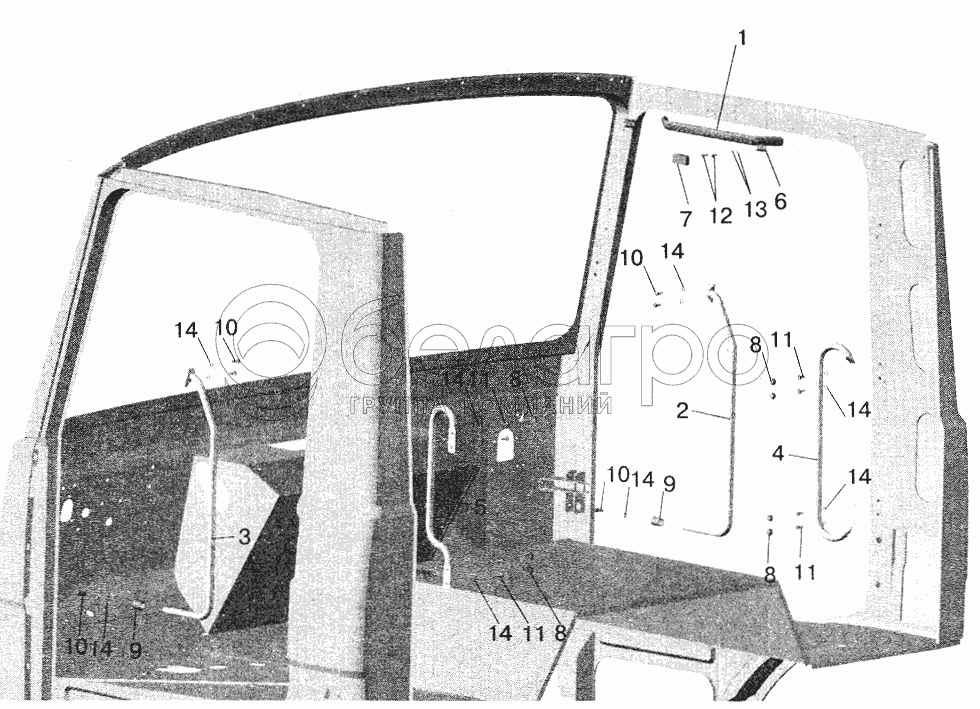Каталог запасных частей к технике: МАЗ-5432. Установка поручней в кабине