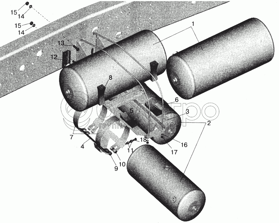 Каталог запасных частей к технике: МАЗ-5432. Установка ресиверов МАЗ-561605, 561603