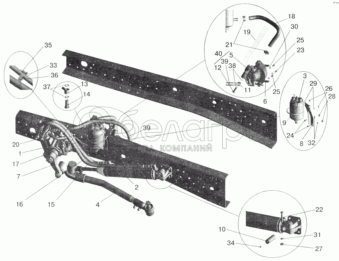 Каталог запасных частей к технике: МАЗ-5432. Установка рулевого управления