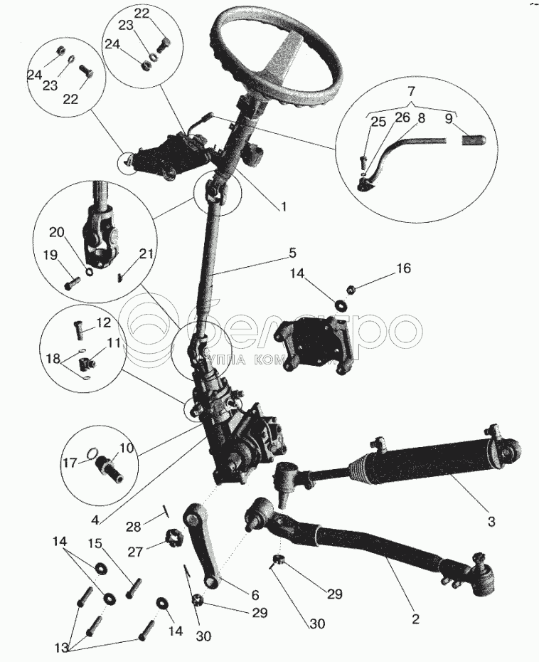 Каталог запасных частей к технике: МАЗ-5432. Установка рулевой колонки и рулевого механизма