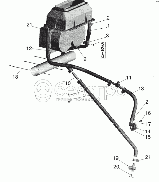 Каталог запасных частей к технике: МАЗ-5432. Установка шлангов отопителя 54327-8100006-010