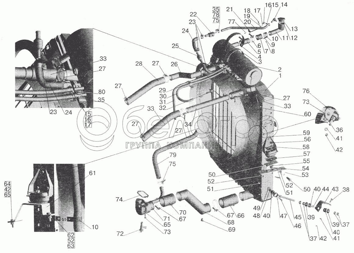 Каталог запасных частей к технике: МАЗ-5432. Установка системы охлаждения МАЗ-642208, 543208