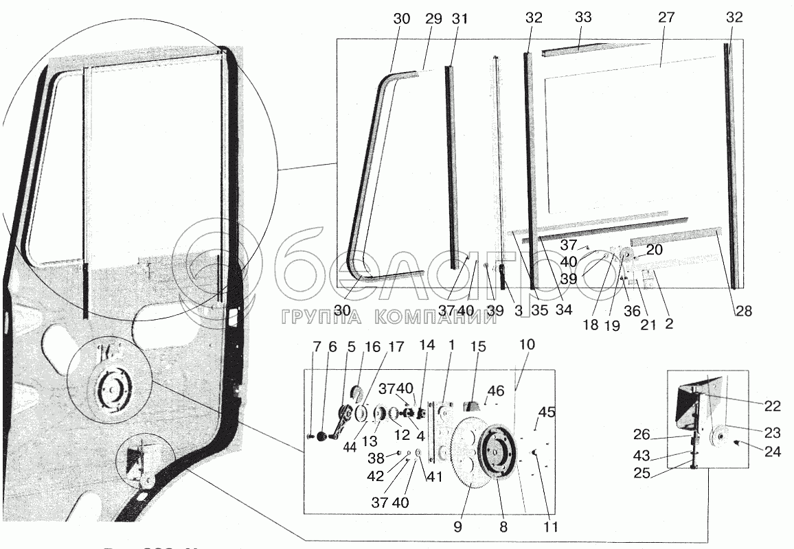 Каталог запасных частей к технике: МАЗ-5432. Установка стеклоподъемника и ручки стеклоподъемника