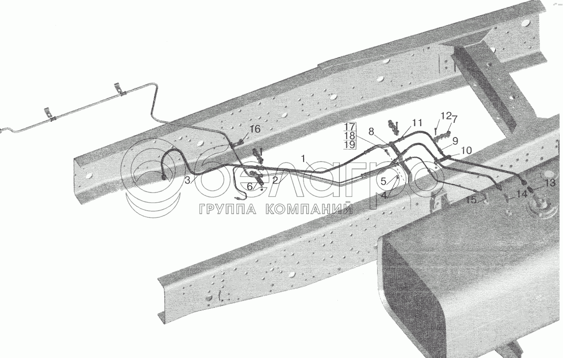 Каталог запасных частей к технике: МАЗ-5432. Установка топливопроводов МАЗ-551603 (без подогревателя)