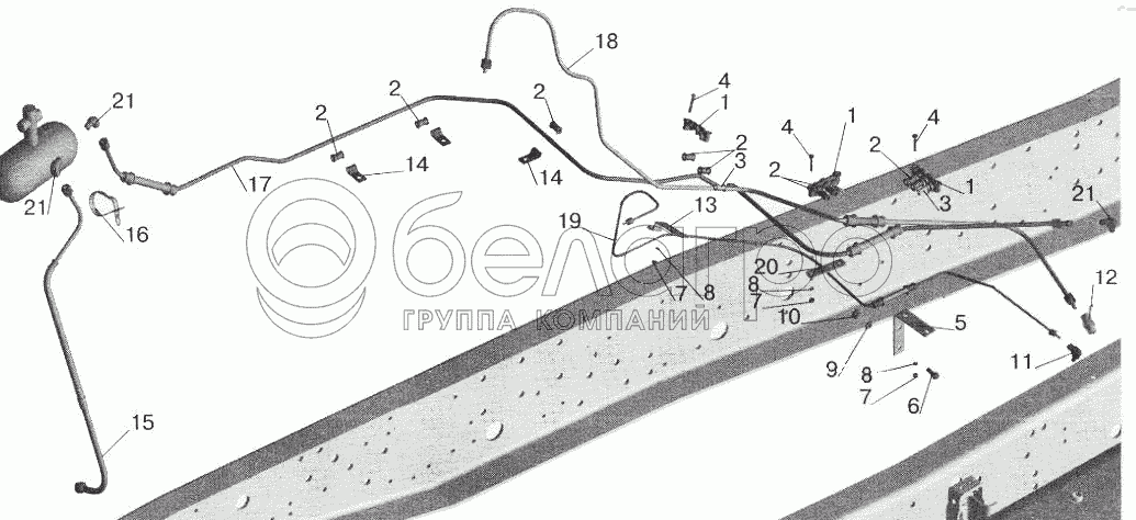 Каталог запасных частей к технике: МАЗ-5432. Установка топливопроводов МАЗ-555102 (с подогревателем)