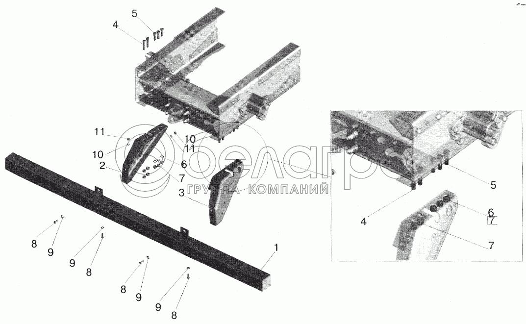 Каталог запасных частей к технике: МАЗ-5432. Установка заднего бампера