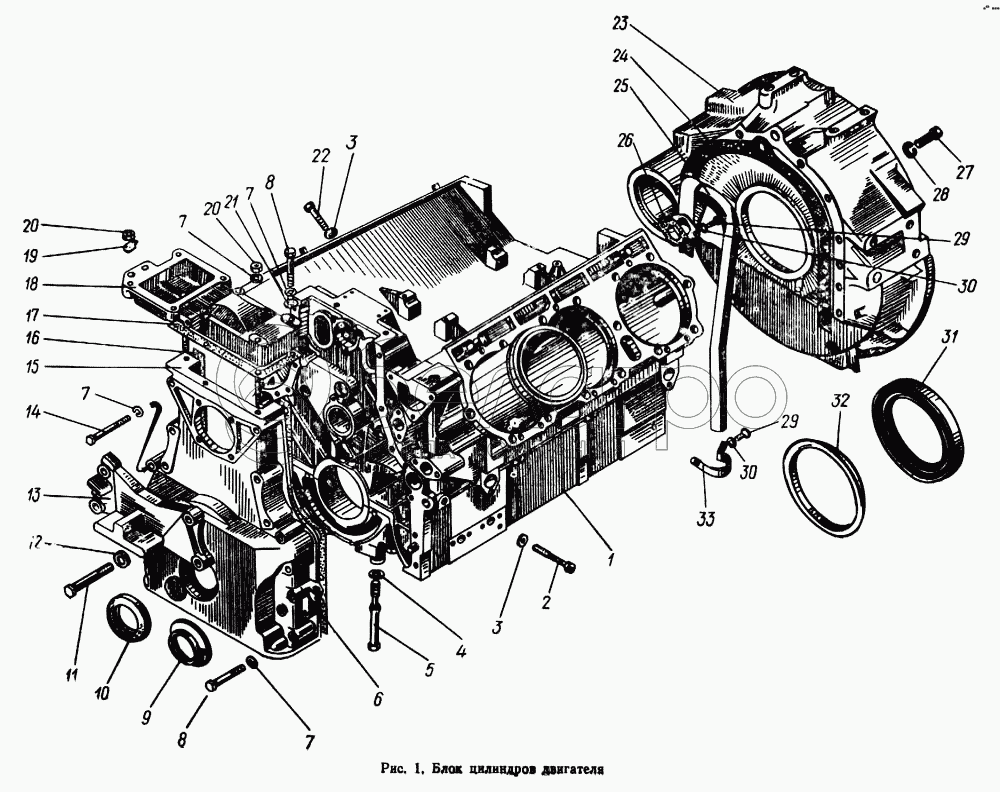 Каталог запасных частей к технике: МАЗ-5433. Блок цилиндров двигателя