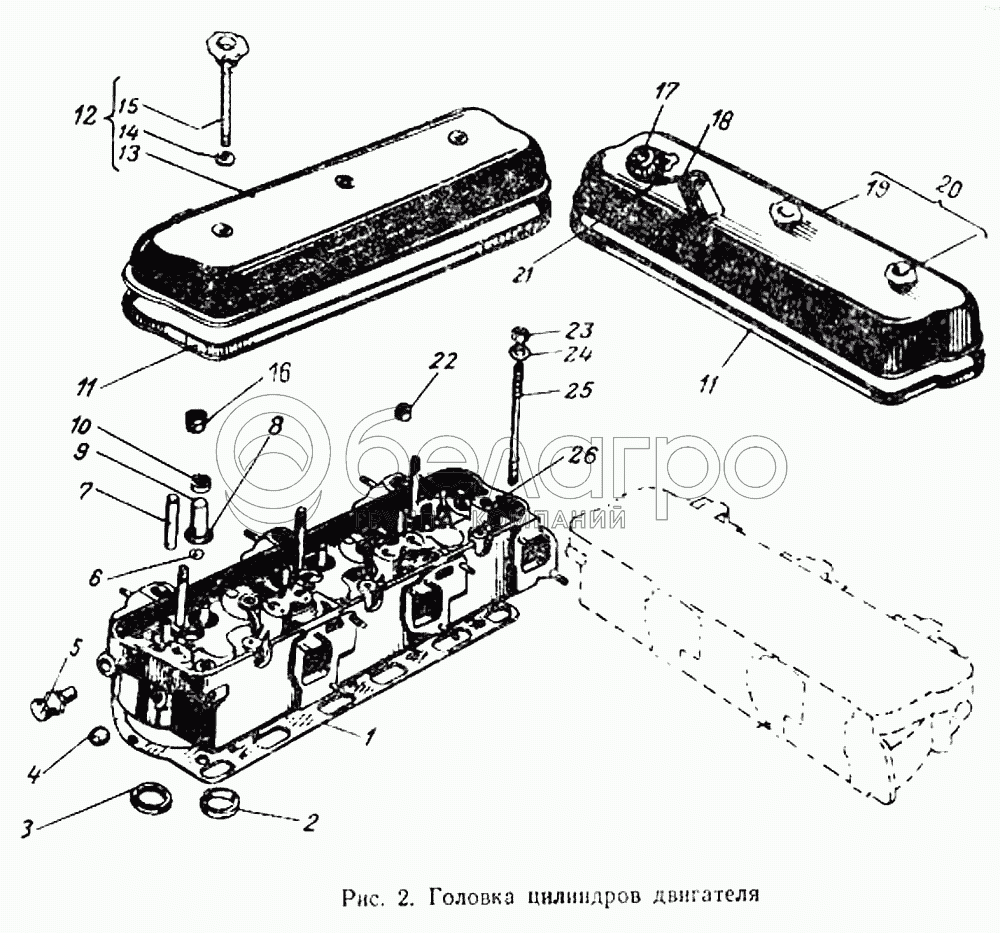 Каталог запасных частей к технике: МАЗ-5433. Головка цилиндров двигателя