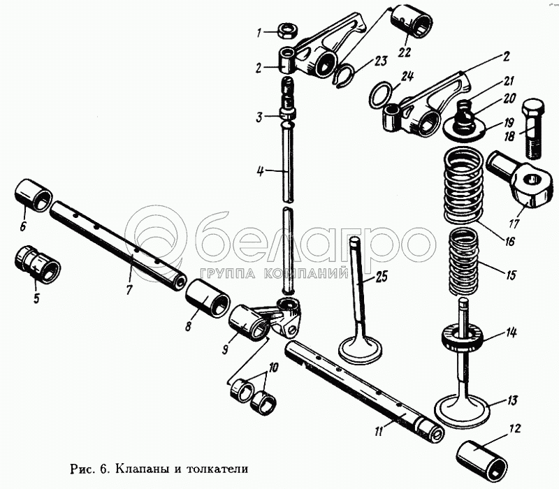 Каталог запасных частей к технике: МАЗ-5433. Клапаны и толкатели