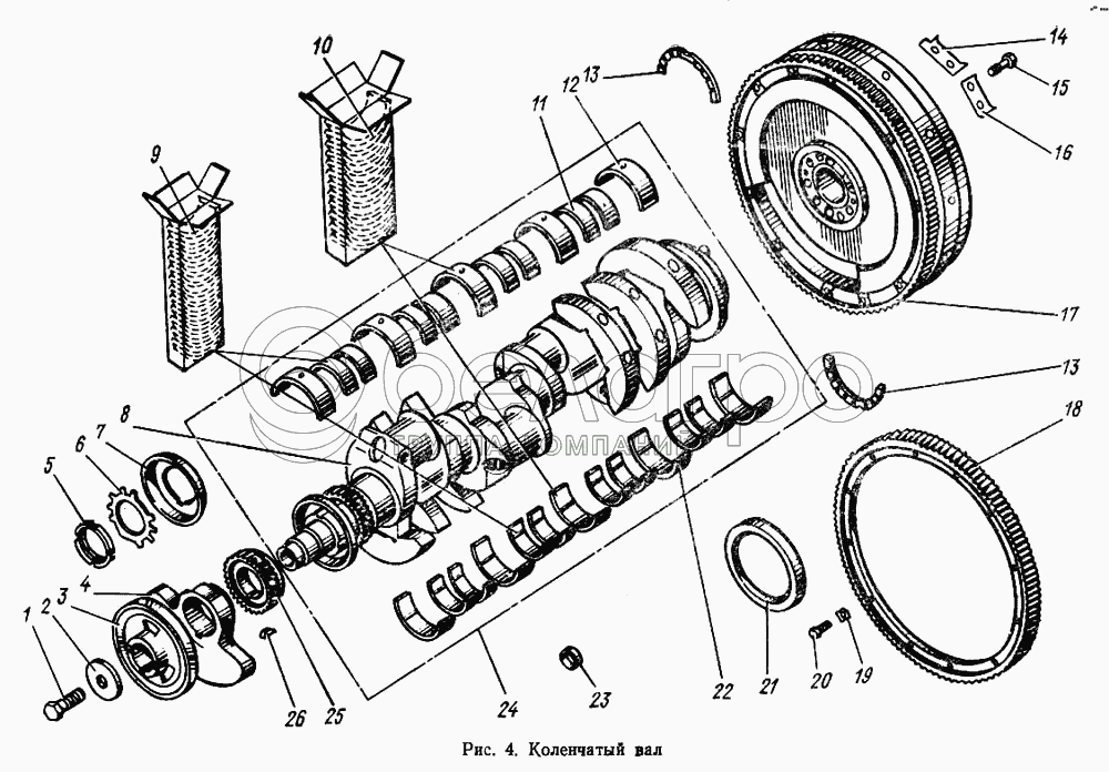 Вал коленчатый со сталебронзовыми коренными и шатунными вкладышами (комплект)