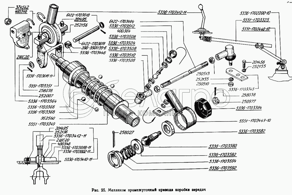 Каталог запасных частей к технике: МАЗ-5433. Механизм промежуточный привода коробки передач