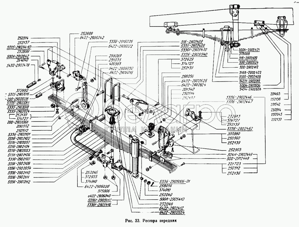 Каталог запасных частей к технике: МАЗ-5433. Рессора передняя