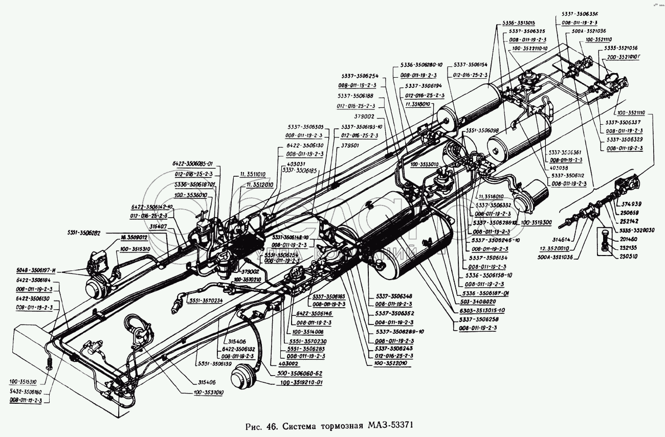 Каталог запасных частей к технике: МАЗ-5433. Система тормозная МАЗ-53371