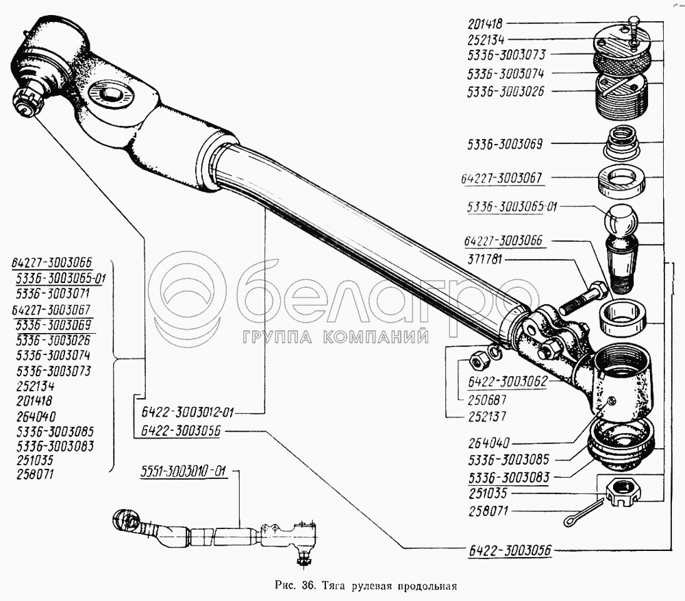 Каталог запасных частей к технике: МАЗ-5433. Тяга рулевая продольная
