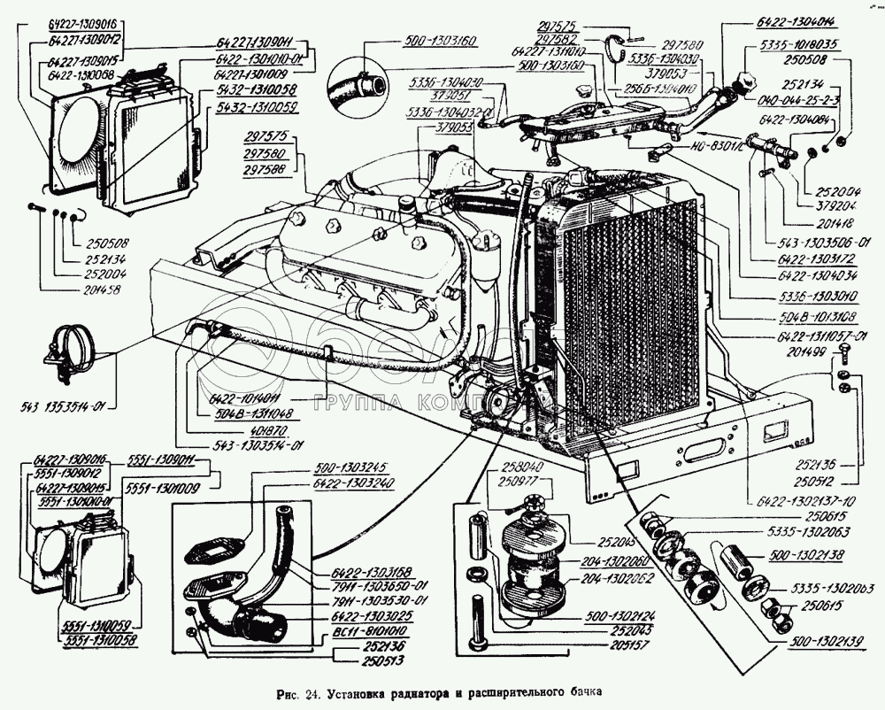 Каталог запасных частей к технике: МАЗ-5433. Установка радиатора и расширительного бачка