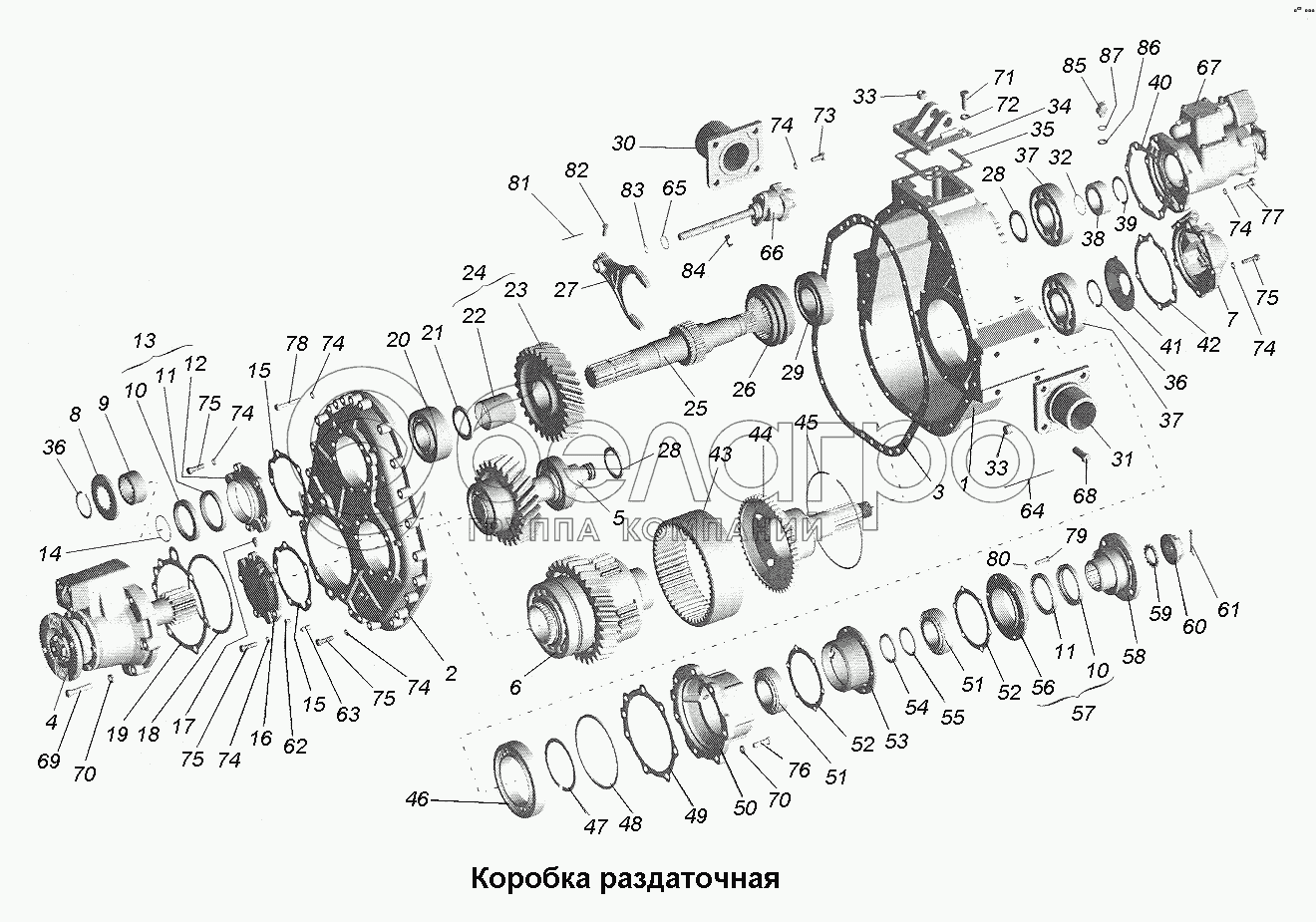 Каталог запасных частей к технике: МАЗ-543403, 641705, 641708. Коробка раздаточная
