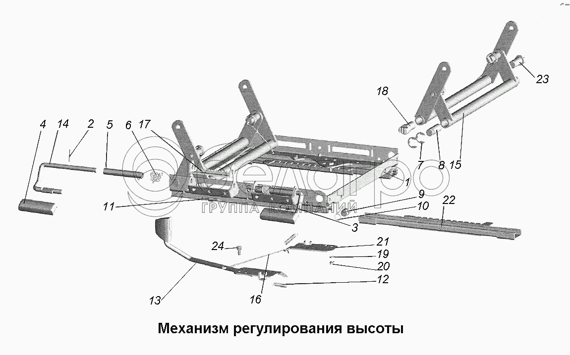 Каталог запасных частей к технике: МАЗ-543403, 641705, 641708. Механизм регулирования высоты
