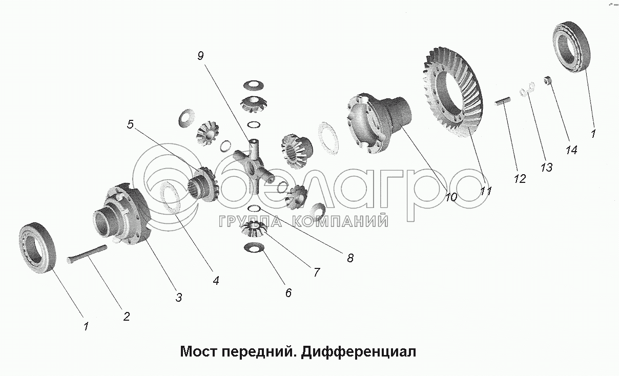 Каталог запасных частей к технике: МАЗ-543403, 641705, 641708. Мост передний. Дифференциал