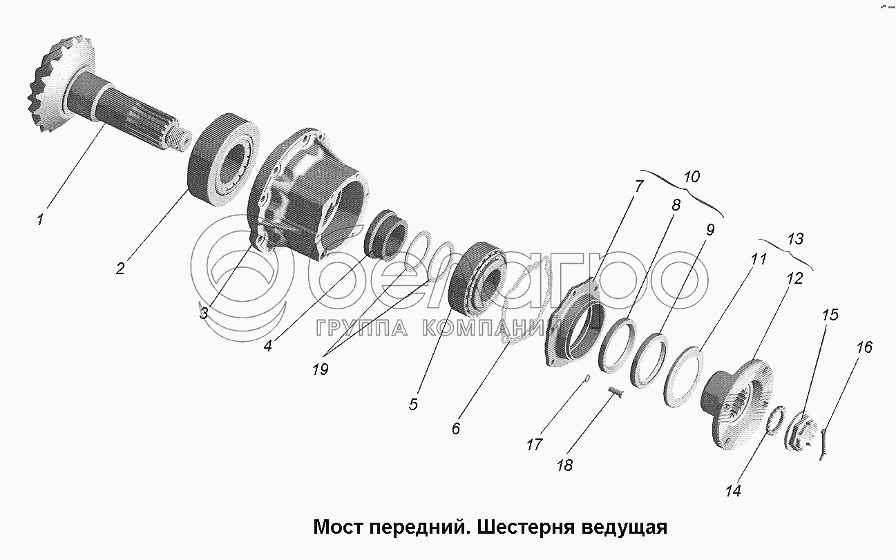 Каталог запасных частей к технике: МАЗ-543403, 641705, 641708. Мост передний. Шестерня ведущая