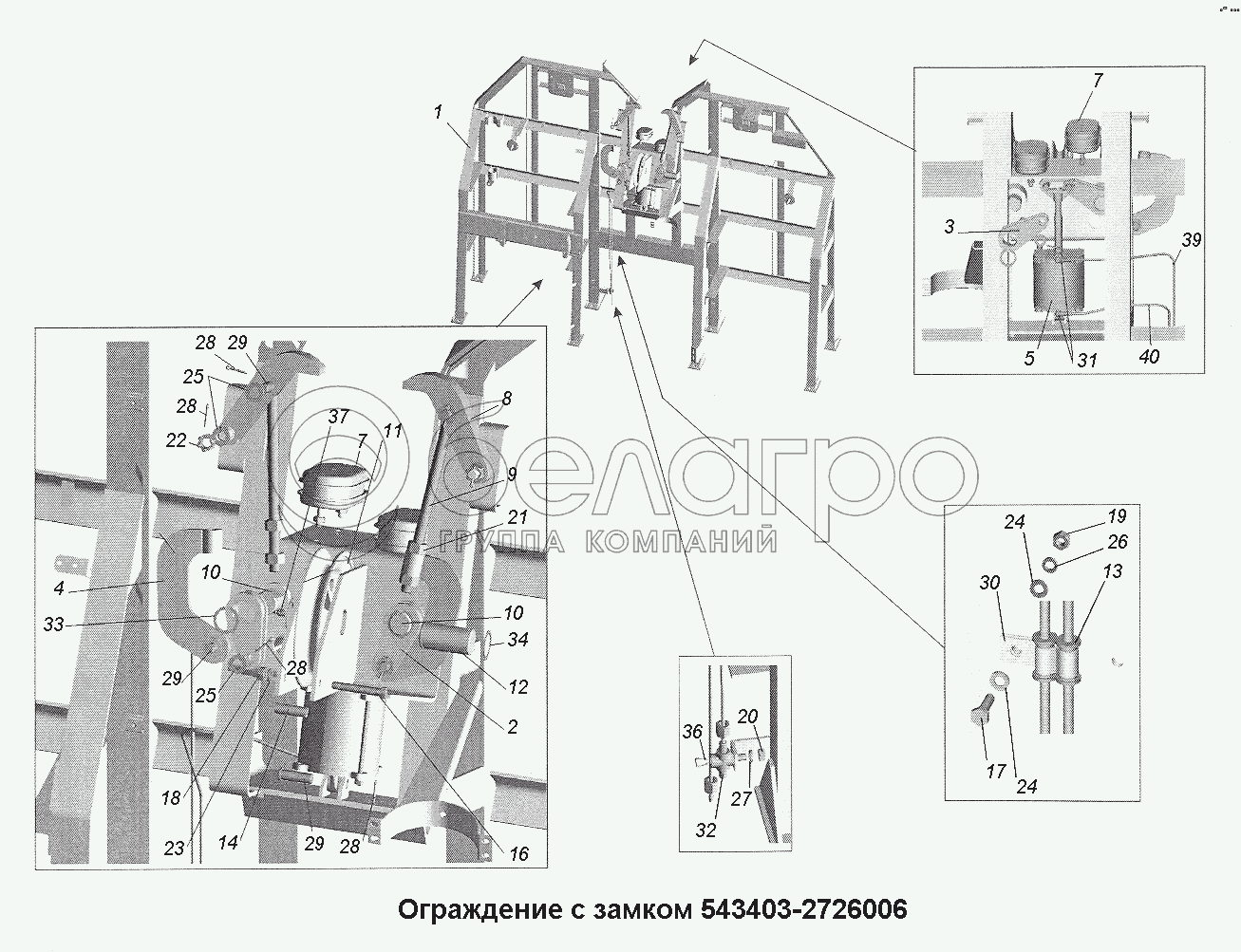 Каталог запасных частей к технике: МАЗ-543403, 641705, 641708. Ограждение с замком 543403-2726006