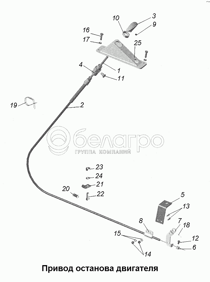 Каталог запасных частей к технике: МАЗ-543403, 641705, 641708. Привод останова двигателя