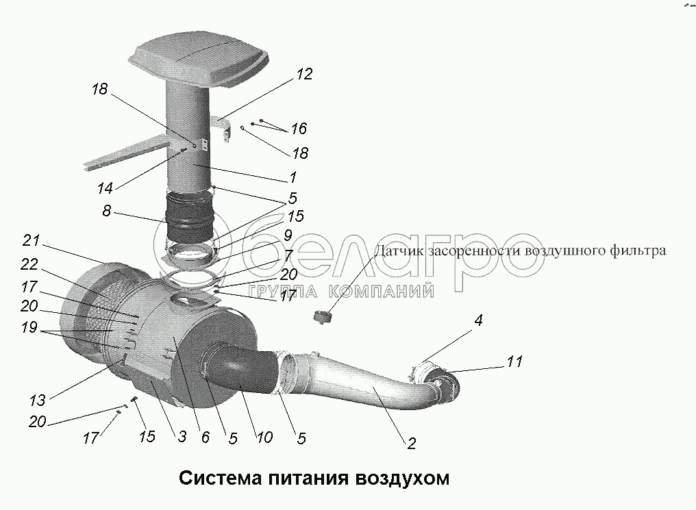 Каталог запасных частей к технике: МАЗ-543403, 641705, 641708. Система питания воздухом
