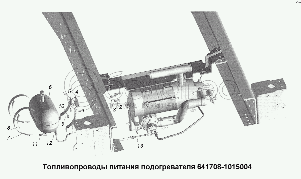 Каталог запасных частей к технике: МАЗ-543403, 641705, 641708. Топливопроводы питания подогревателя 641708-1015004