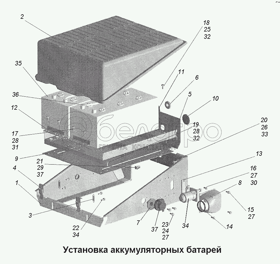 Каталог запасных частей к технике: МАЗ-543403, 641705, 641708. Установка аккумуляторных батарей