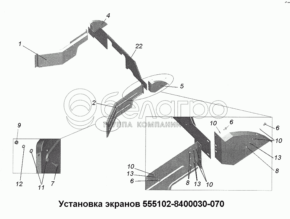 Каталог запасных частей к технике: МАЗ-543403, 641705, 641708. Установка экранов 555102-8400030-070