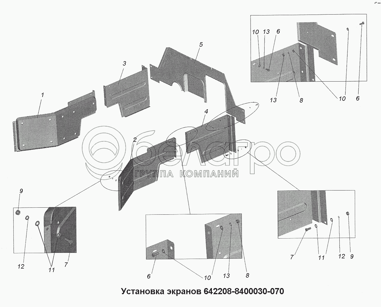 Каталог запасных частей к технике: МАЗ-543403, 641705, 641708. Установка экранов 642208-8400030-070