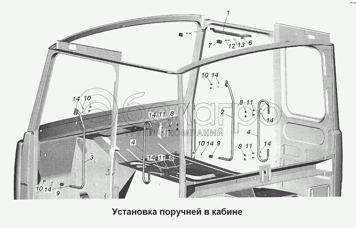 Каталог запасных частей к технике: МАЗ-543403, 641705, 641708. Установка поручней в кабине