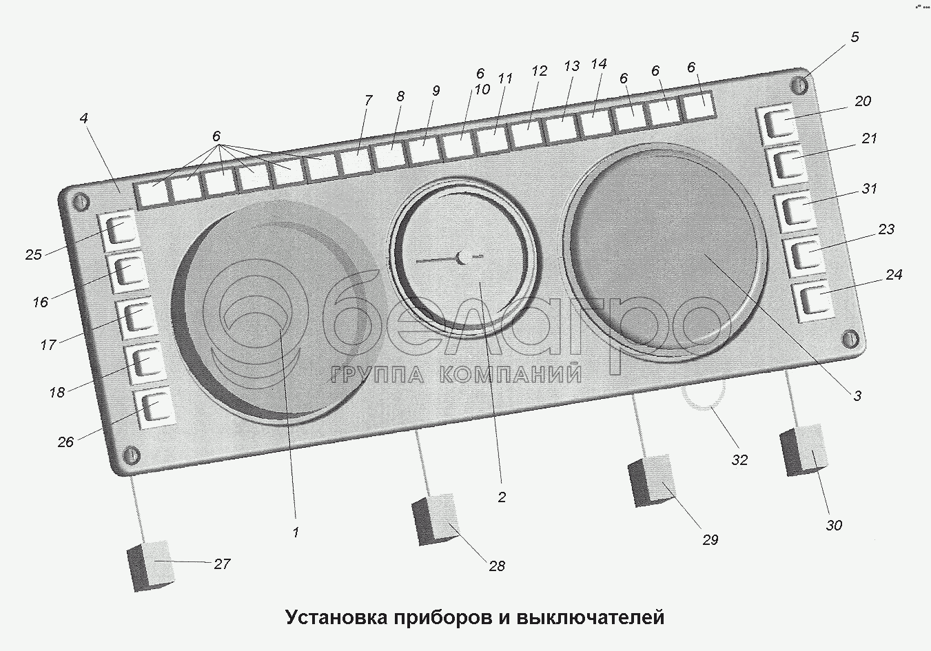 Каталог запасных частей к технике: МАЗ-543403, 641705, 641708. Установка приборов и выключателей