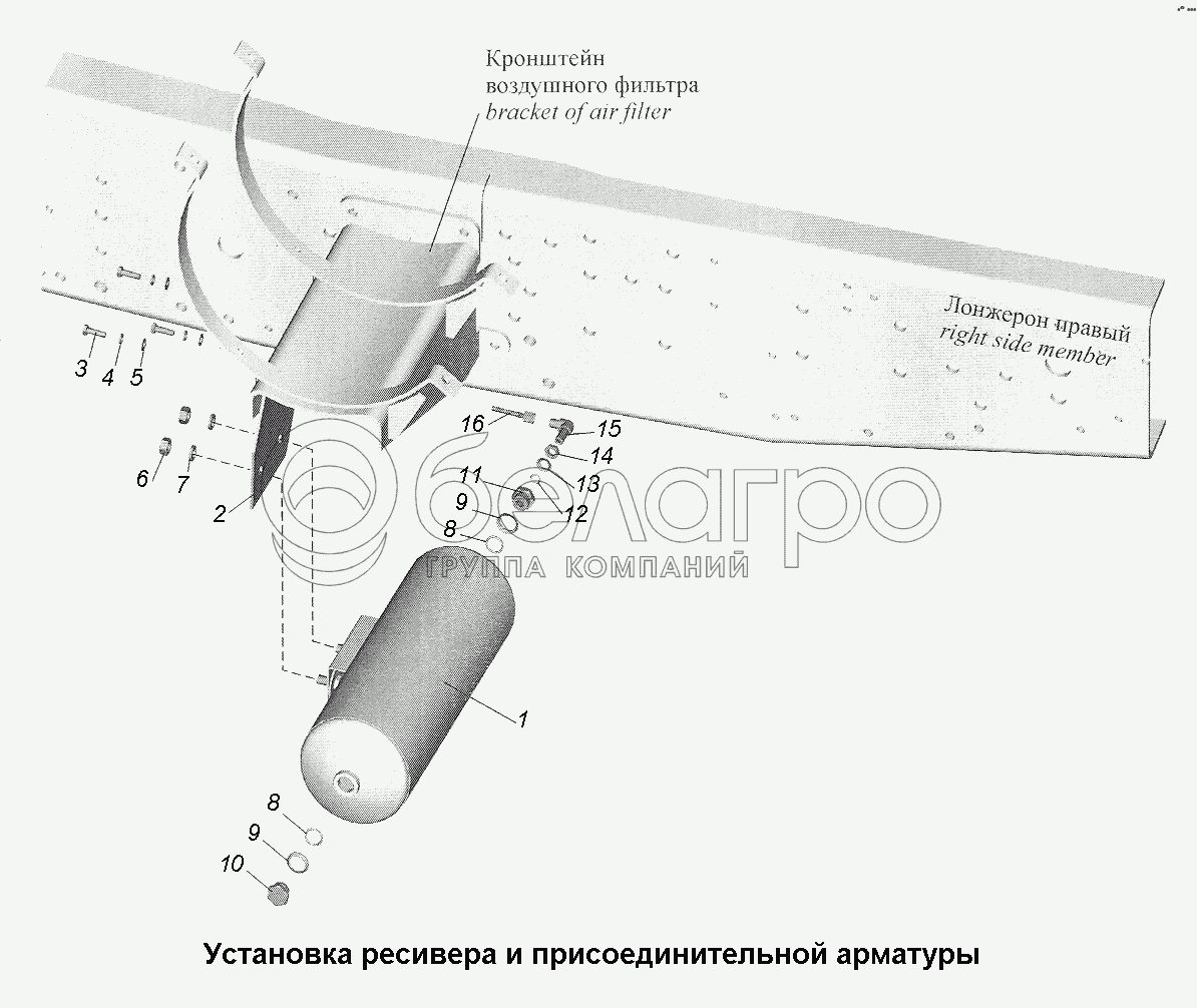 Каталог запасных частей к технике: МАЗ-543403, 641705, 641708. Установка ресивера и присоединительной арматуры