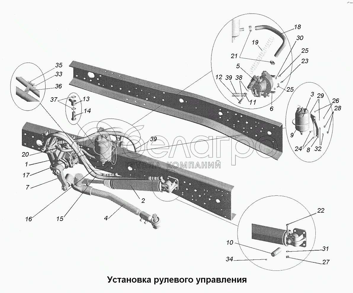 Каталог запасных частей к технике: МАЗ-543403, 641705, 641708. Установка рулевого управления