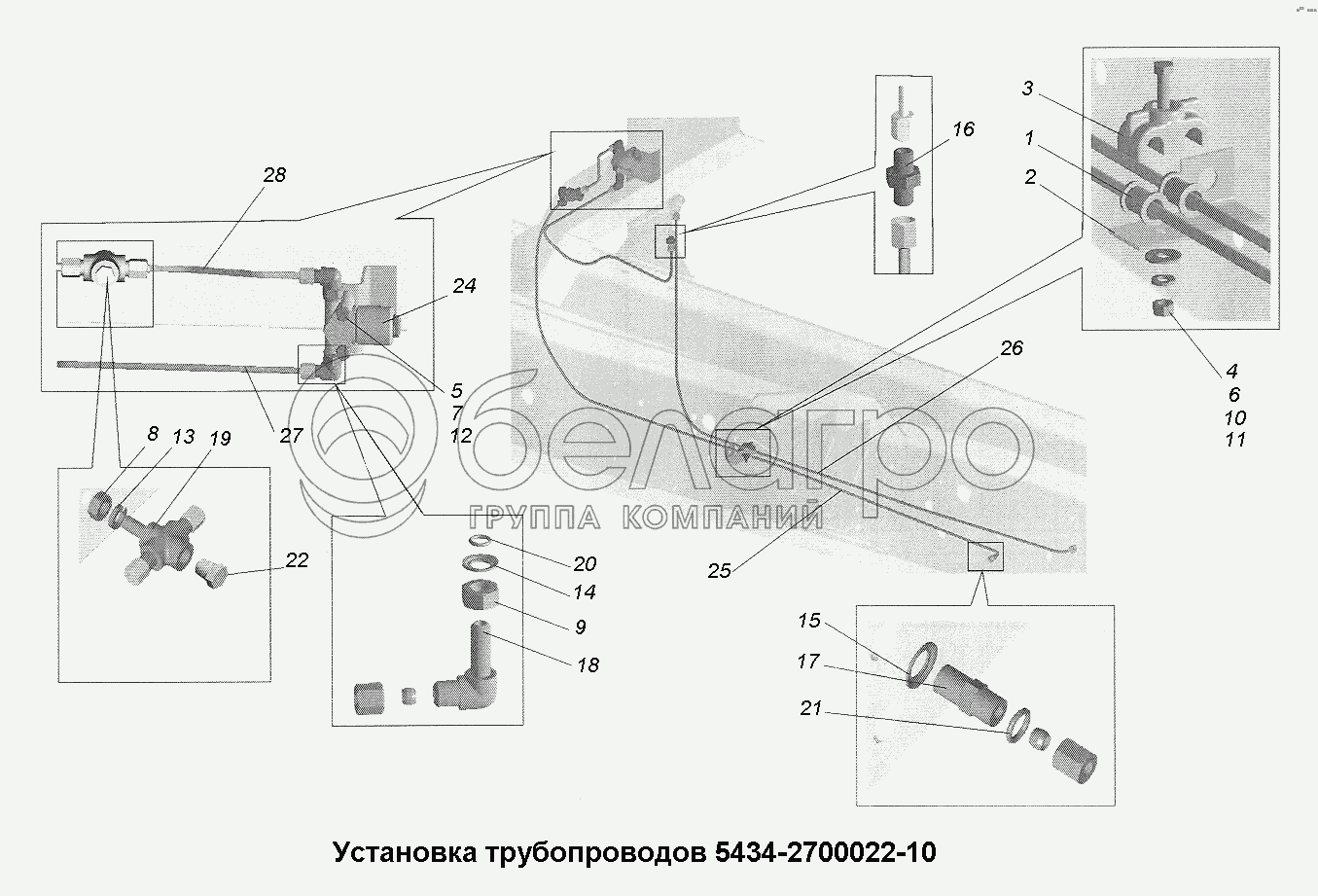 Каталог запасных частей к технике: МАЗ-543403, 641705, 641708. Установка трубопроводов 5434-2700022-10