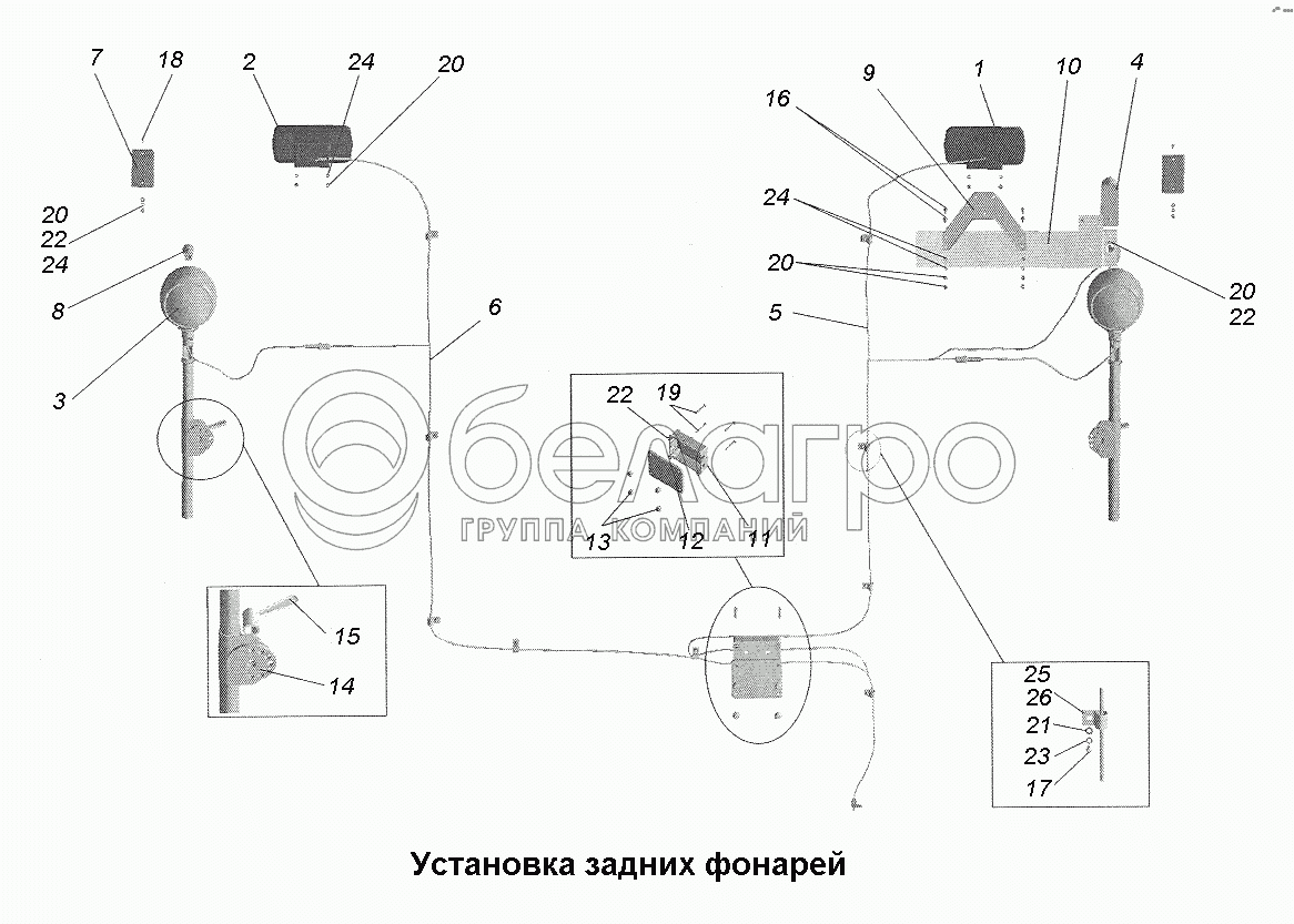 Каталог запасных частей к технике: МАЗ-543403, 641705, 641708. Установка задних фонарей