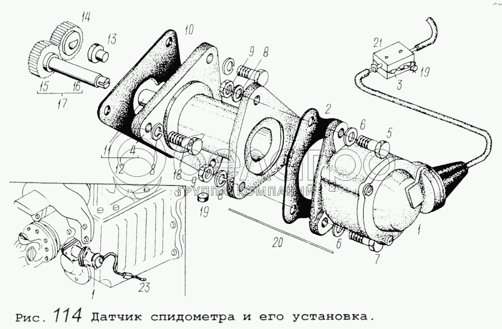 Каталог запасных частей к технике: МАЗ-5434. Датчик спидометра и его установка