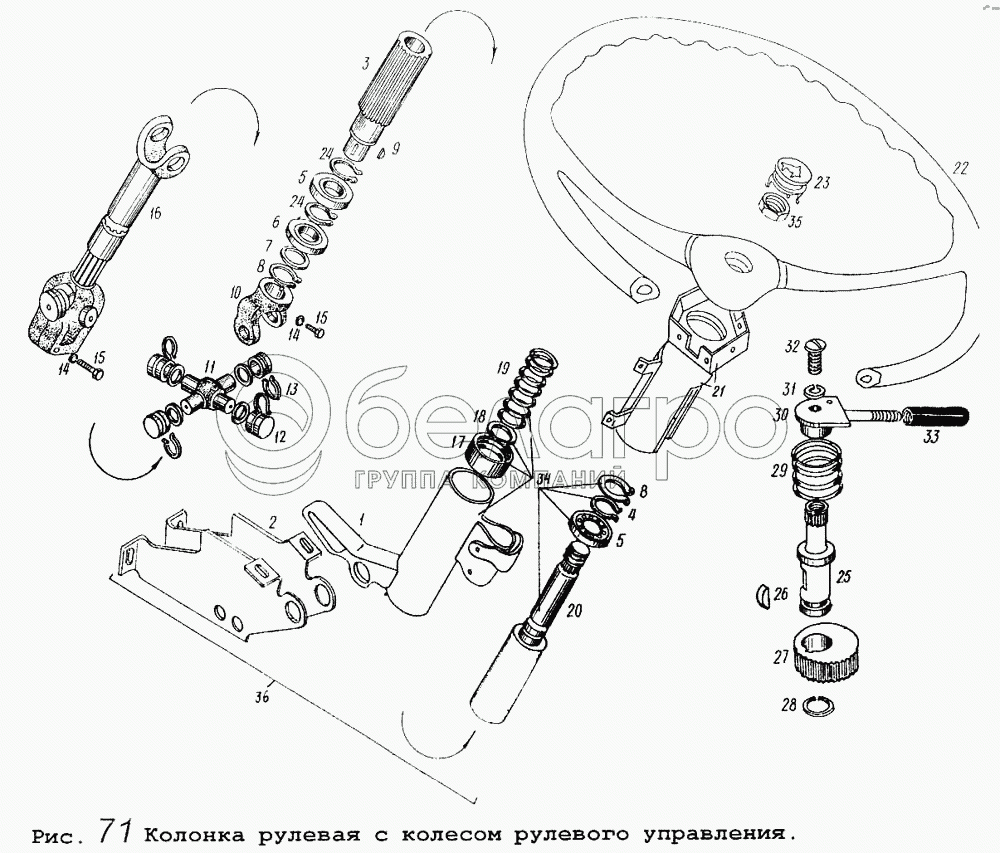 Каталог запасных частей к технике: МАЗ-5434. Колонка рулевая с колесом рулевого управления