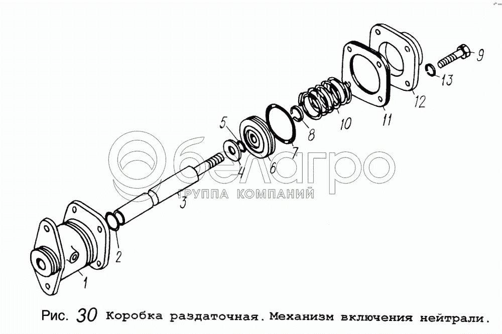 Каталог запасных частей к технике: МАЗ-5434. Коробка раздаточная. Механизм включения нейтрали