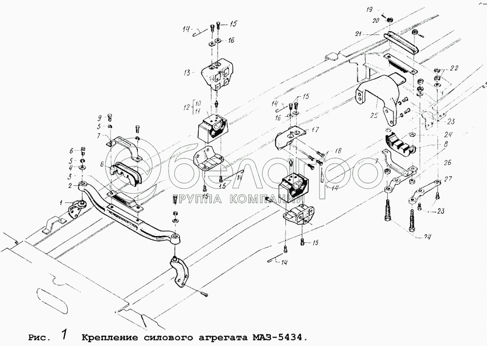 Каталог запасных частей к технике: МАЗ-5434. Крепление силового агрегата МАЗ-5434